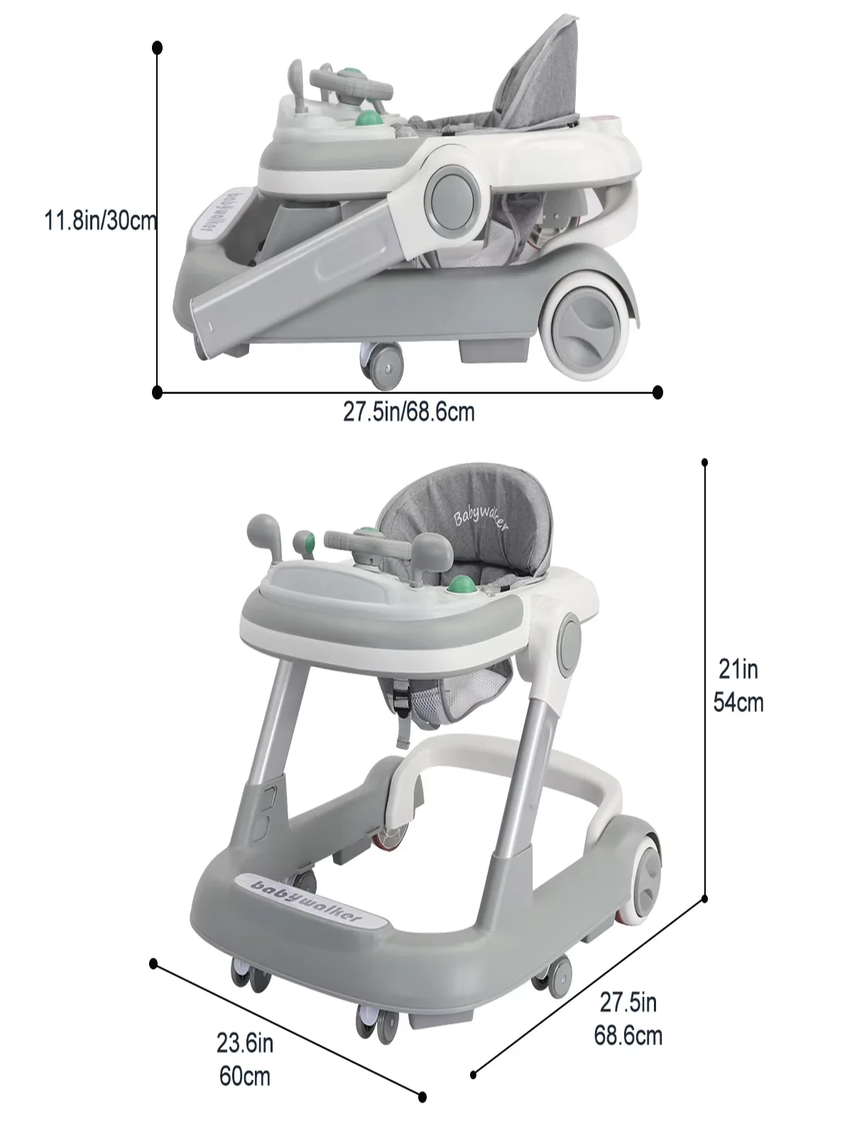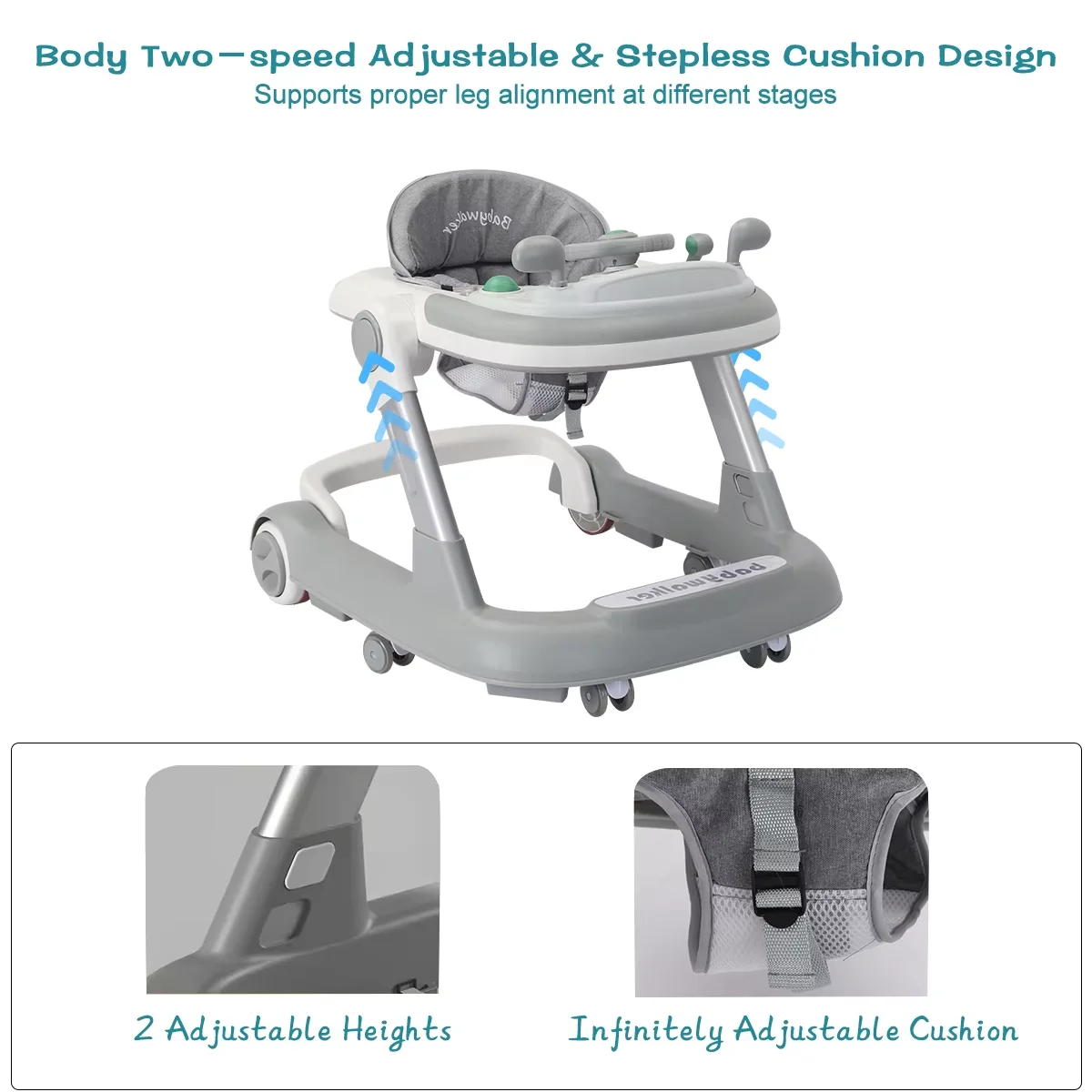 2-in-1 Baby Walker - Foldable, Height-Adjustable Push Cart with Anti-Roll Design , Stylish Baby Gear for 6-18 Months