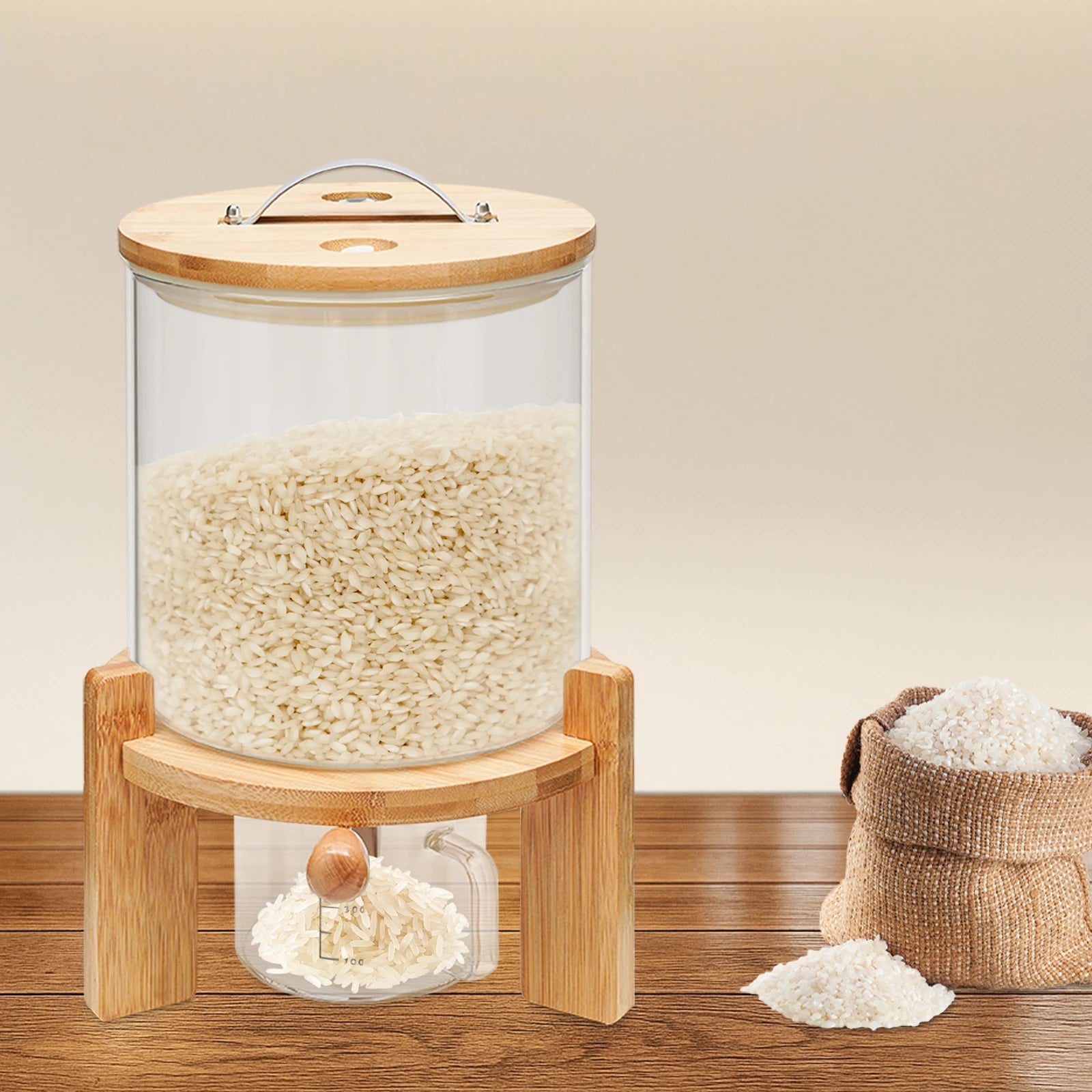 5L Cereal Dispenser for Pantry Organization and Storage with Round Base+valve+cup Cereal Containers Storage