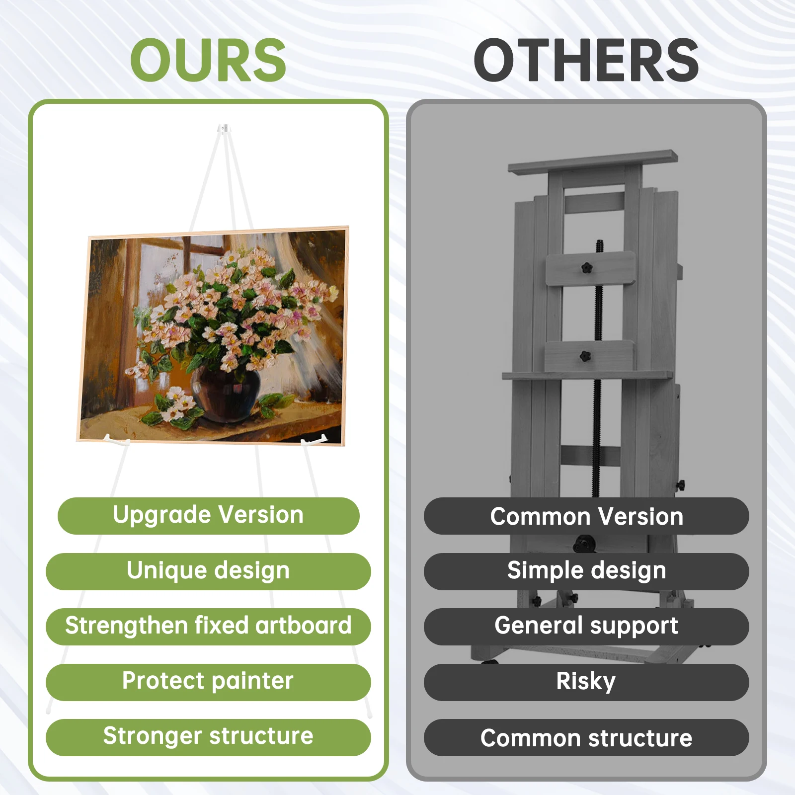 [Design more special] : Unlike ordinary easels, our support structure is thicker, wider and less prone to collapse, which can better protect and hold the drawing board and poster. Bottom fasteners slide and adjust to fit different sizes of drawing boards.