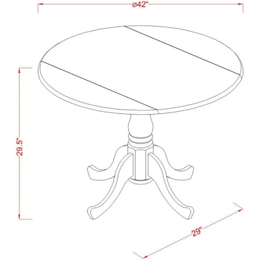 - PRODUCT DIMENSIONS: The dimension of our elegant drop leaves the wood dining table: Length: 42; Width: 42; Height: 29.5. The size of our gorgeous kitchen chairs: Length: 22.5; Width: 22.2; Height: 36.2.