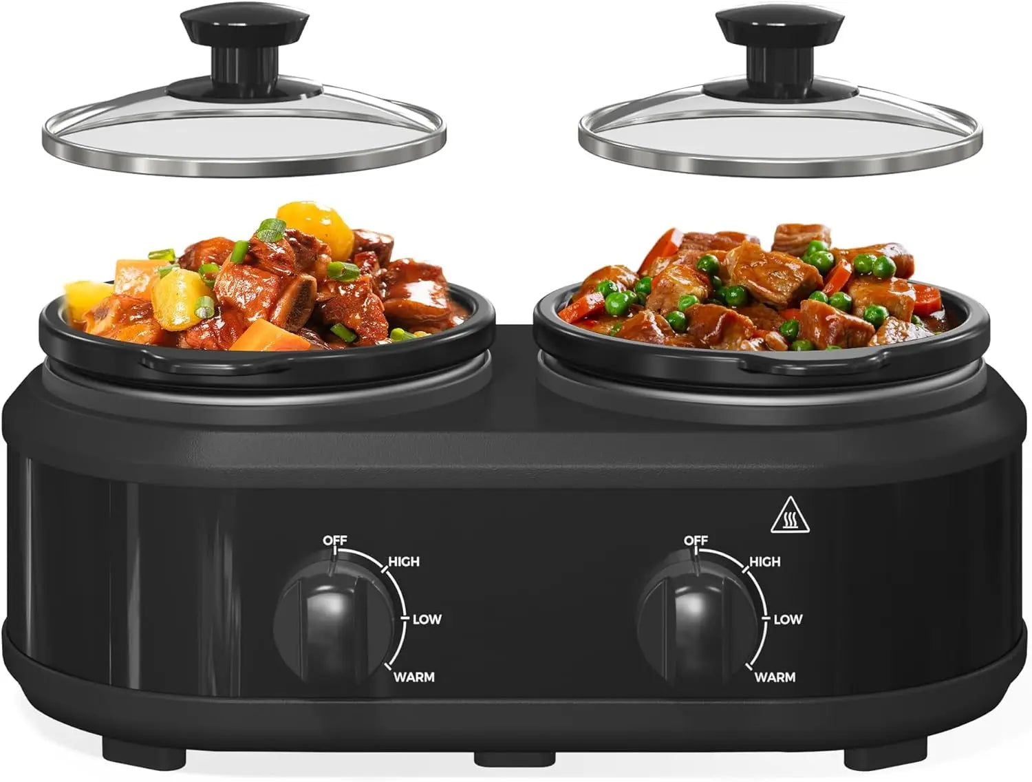 Double Slow Cooker, Buffet Servers and Warmers, Dual 2 Pot Slow Cooker Food Warmer, Adjustable Temp Dishwasher Safe Removable Ce