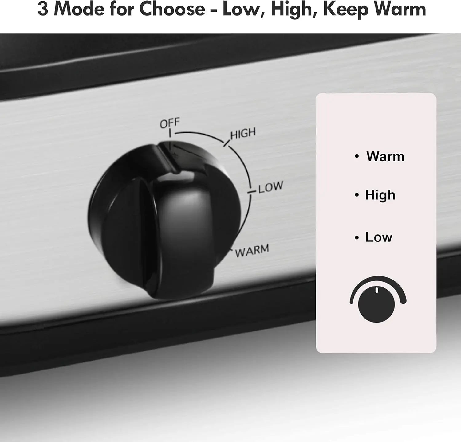 4. SLOW COOKER WITH THREE COOKING SETTINGS - There are 3 cook settings: Low, High and Warm, giving you the flexibility to cook whatever you want and keep food warm for hours, ensure your food cooked in the best cooking condition. And each crock cooker has their own individual controls to adjust the temperature for cooking and keep warm