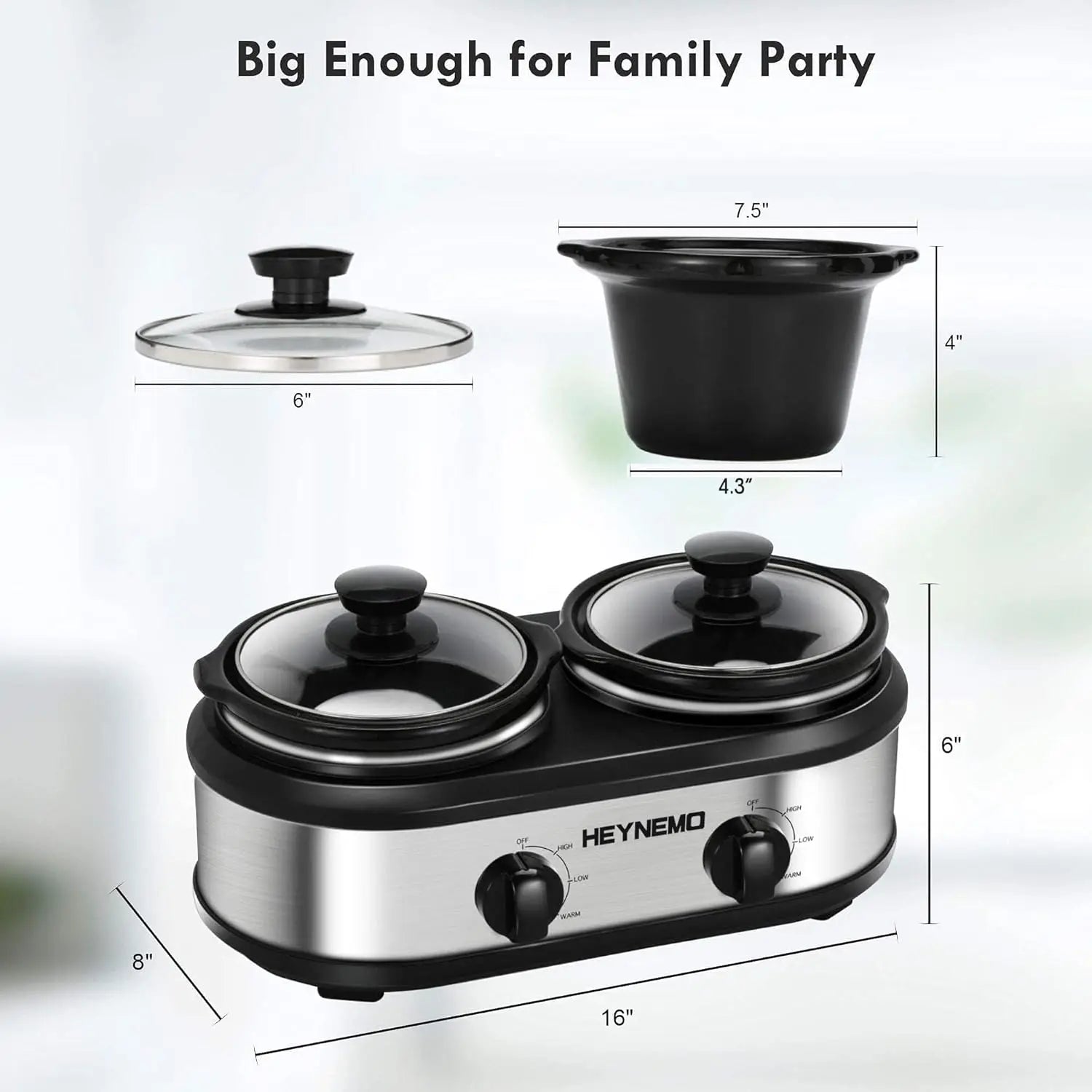 Double Slow Cooker, Buffet Servers and Warmers, Dual 2 Pot Slow Cooker Food Warmer, Adjustable Temp Dishwasher Safe Removable Ce