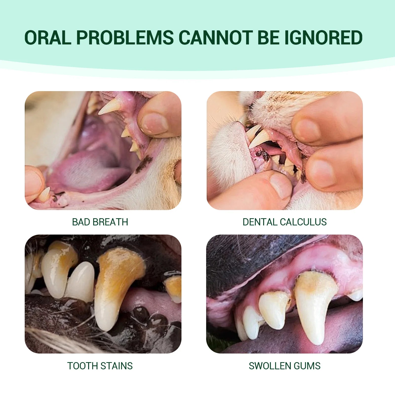 Our pet Fresh Breath Cleanser contains deionized water, peppermint extract and honeysuckle extract. It can deeply clean pet teeth and protect oral health; Deep clean your pet's teeth, help clean your pet's mouth, and enjoy close contact with your pet. Its use method is very simple: pour the appropriate amount of this product into the pet's diet, stir well before eating. Pet Fresh Breath Cleanser with peppermint extract easily removes bad breath and freshens breath