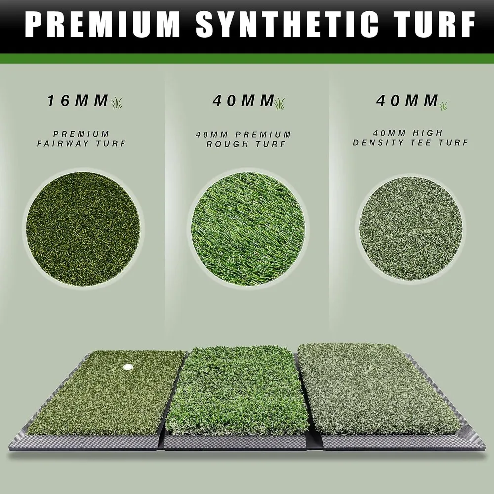 Professional Tri-Turf Golf Hitting Mat | Heavy Duty Rubber Backing Practice Mat Ideal for Indoor and Outdoor Artificial Lawn